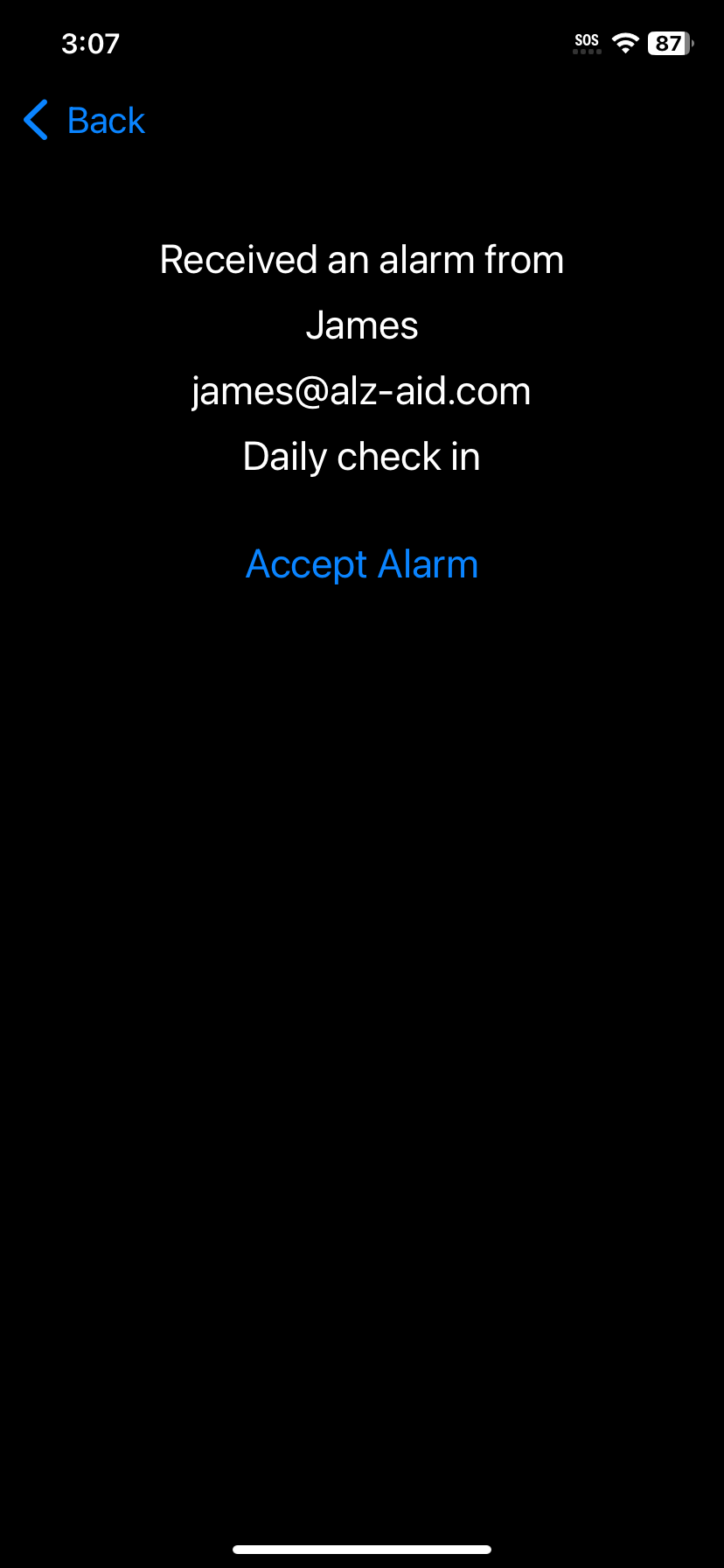 Alz-Aid is an assistant app for Alzheimer's and dementia patients to remember the past, their contacts and future important tasks. It is also for caregivers to help their loved ones manage their daily lives better by checking in with them remotely through shared alarms and video calls.